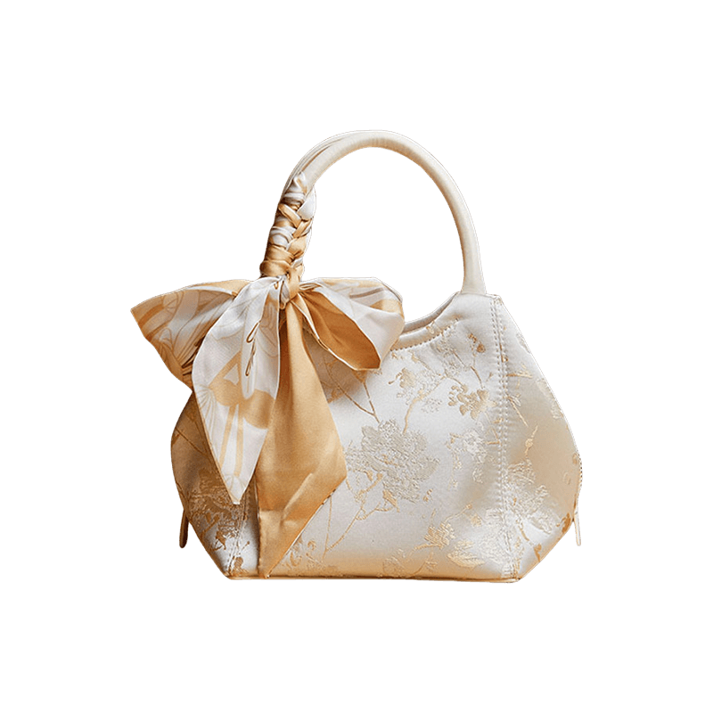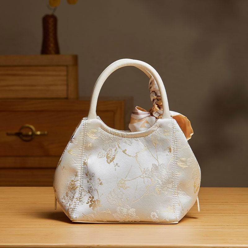 Brocade Silk Cute Bucket Bag Fenghuang Pattern Handbag
