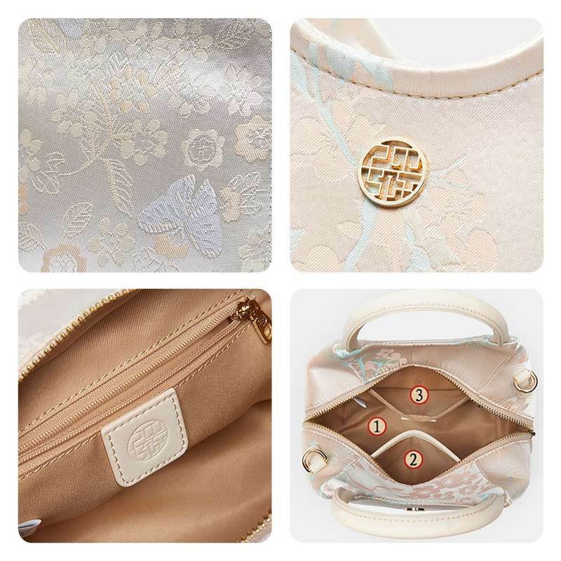 Brocade Silk Pink Butterfly Bucket Bag Designer Handbag