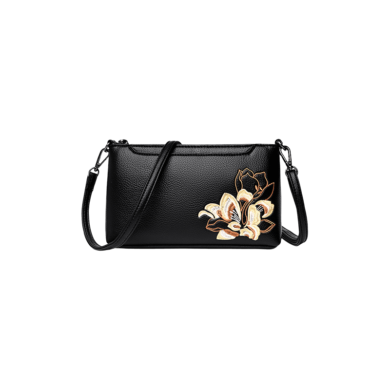 Embroidery Leather Shoulder Clutch Wallet Orchid