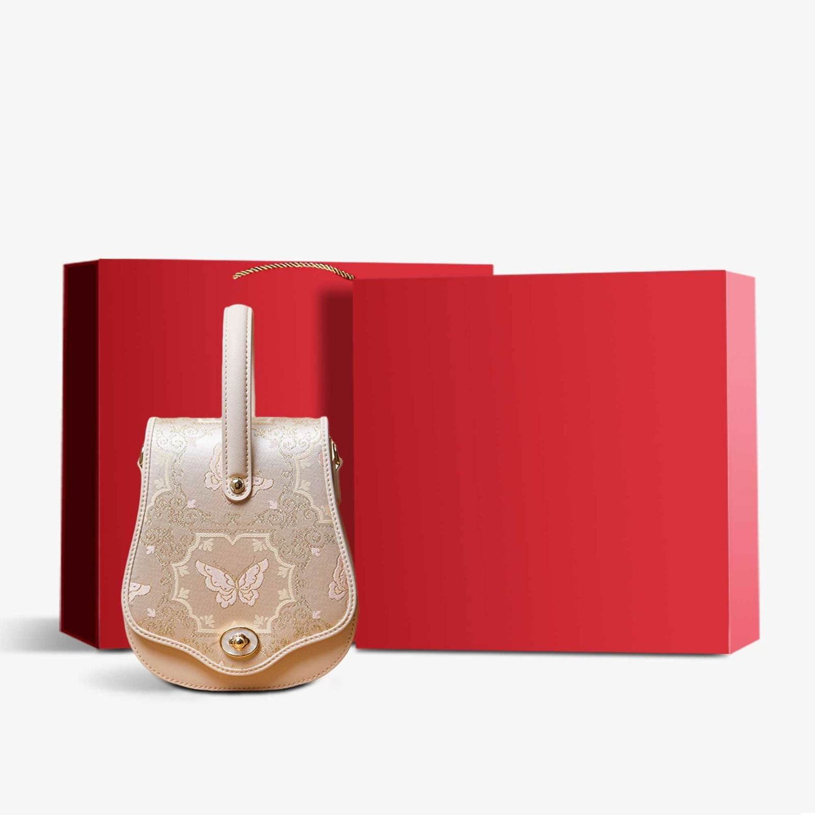Brocade Jacquard Beige Butterfly Designer Saddle Bag