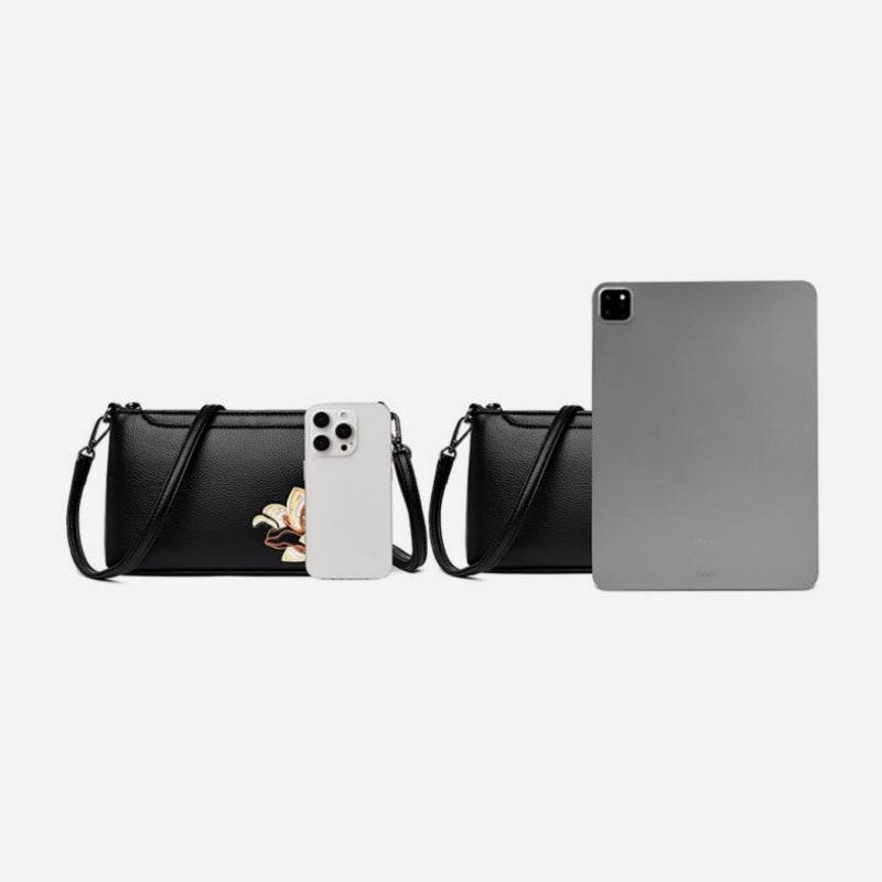 Embroidery Leather Shoulder Clutch Wallet Orchid